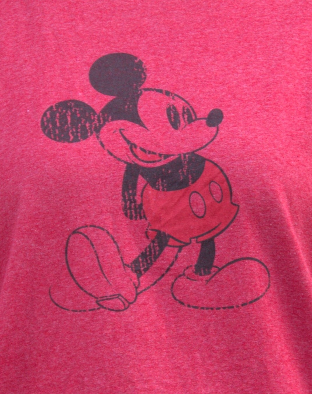 Faded rood Disney shirt met klassieke Mickey Mouse print. Het shirt heeft een Made in the USA tag en is dus met recht vintage te noemen. Het shirt is gemaakt van katoen en polyester en is een maat M. Het shirt is in goede, maar gedragen staat.