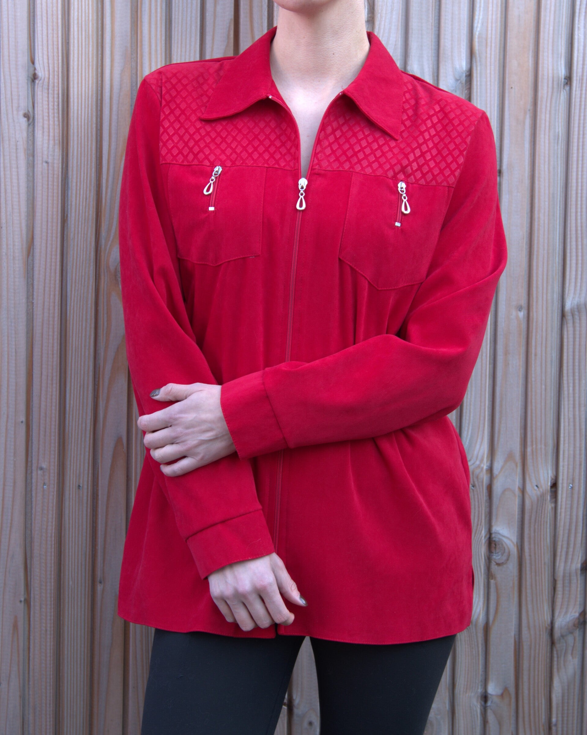 Polyester shirt met ritssluiting. Leuke details zijn is het afwijkende patroon op het borstpand en twee decoratieve ritsen, waardoor het shirt een moderene westerne vibe krijgt. Het shirt is in uitstekende staat, valt als een L en ziet er als nieuw uit.