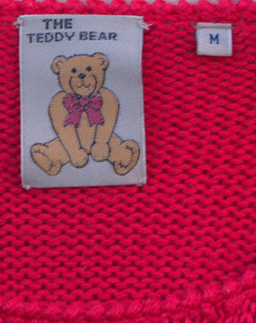 Rode trui van een beer die de bloemetjes buitenzet en ze daarna zelf plukt. Echt een trui waar je vrolijk van wordt! De trui is een medium en gemaakt van een wol/acryl blend.