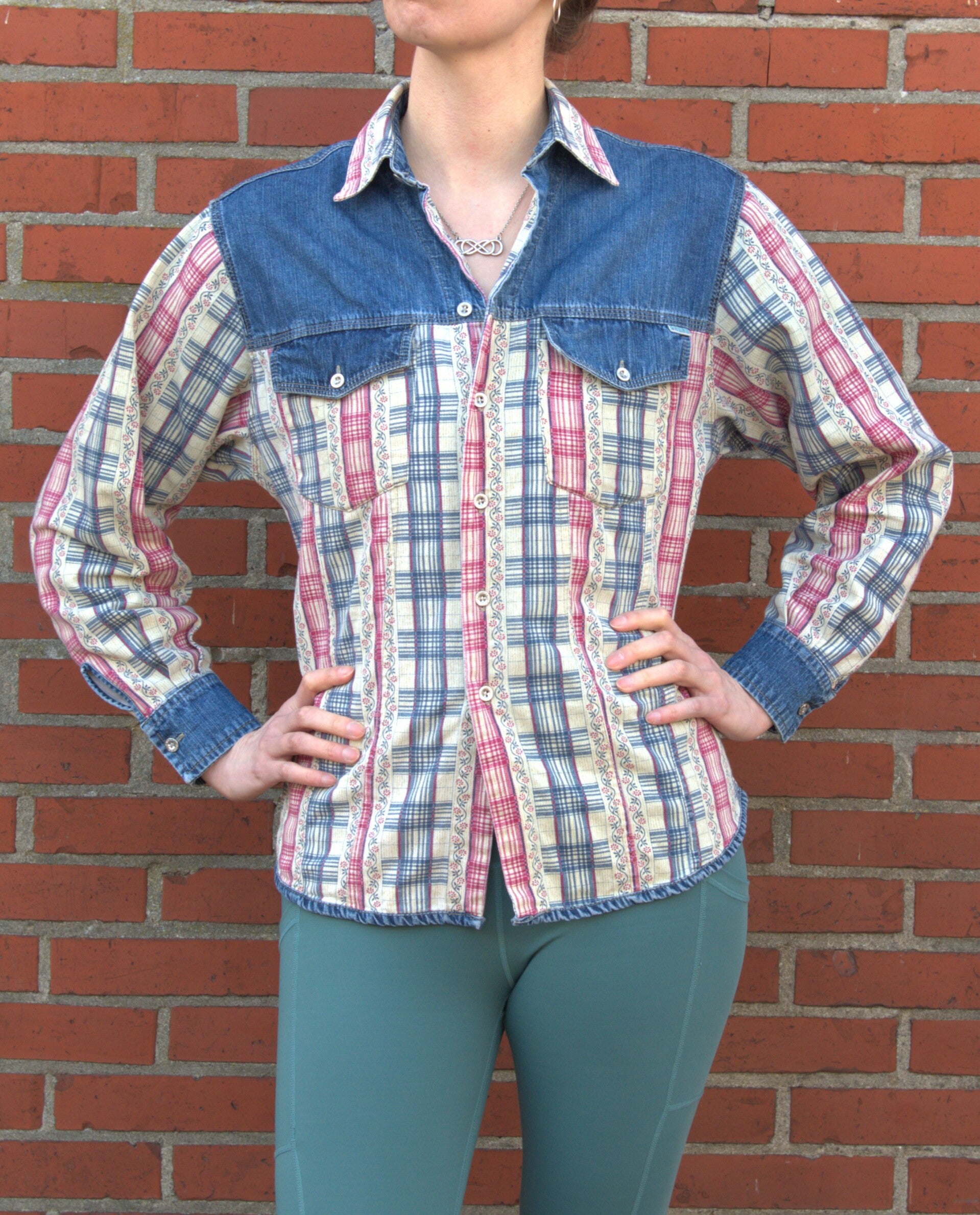 Western stijl blouse met veel leuke details. De staat van deze blouse is bijzonder goed en door de western vibe waan je jezelf even op het podium tijdens de wereldkampioenschappen linedance. Maat M.