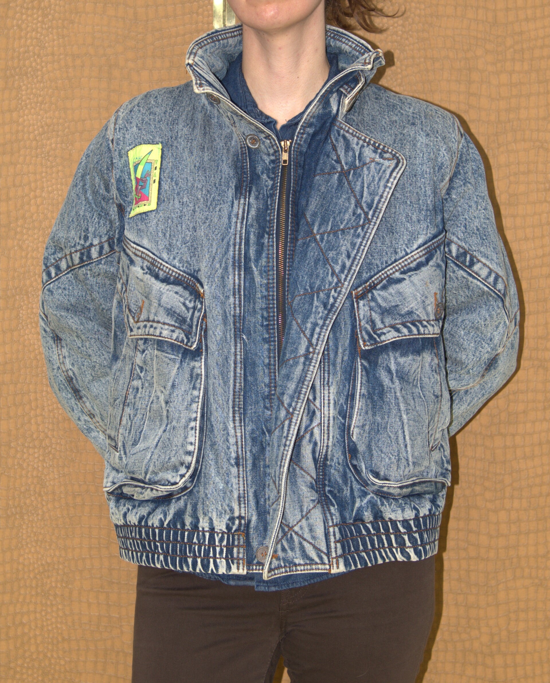 [80's] Gevoerde denim winterjas
